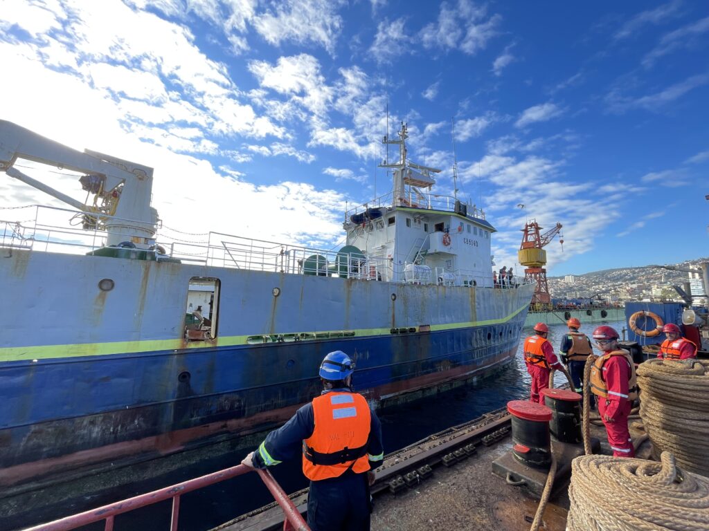 El pasado lunes se llevó a cabo con éxito la maniobra de varada del PAM “Polaris II” en el dique flotante “Valparaíso III”, destacando la planificación, coordinación y experiencia de los equipos involucrados en la operación.